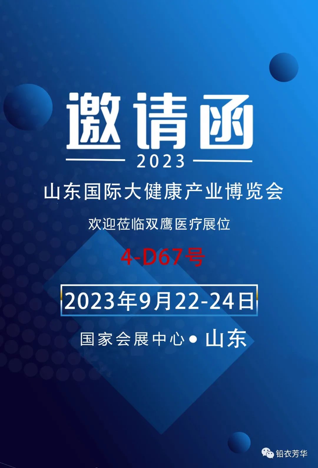 2023年9月22日-24日,2023山東國際大健康產(chǎn)業(yè)博覽會(huì)在山東國際展覽中心隆重舉行,屆時(shí)雙鷹醫(yī)療在4-D67號(hào)展位恭候您的光臨!