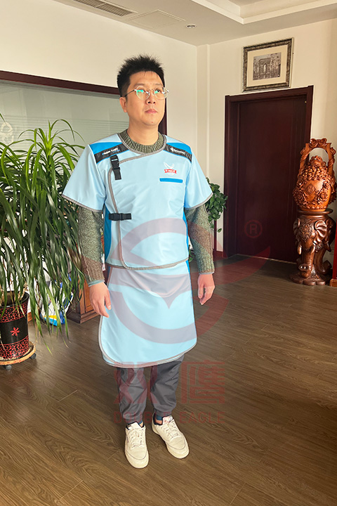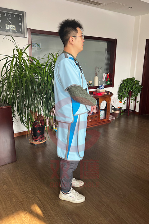 在進(jìn)行放射性診療檢查時,要檢查X射線防護(hù)服附屬部件是否齊全,是否符合自己所需的鉛當(dāng)量,然后再進(jìn)行操作。